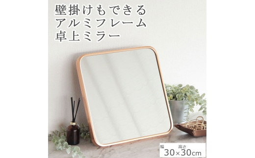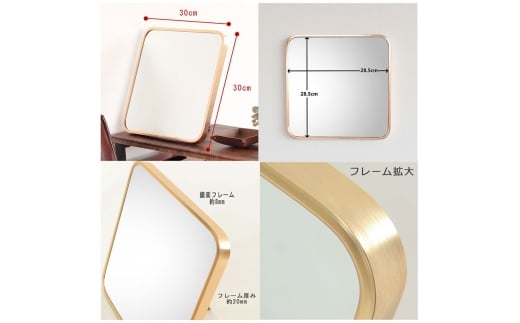 - 卓上ミラー アルミ製 ゴールド色 鏡 かがみ 壁掛け アルミフレーム スタンドミラー ウォールミラー インテリア おしゃれ メイク 玄関