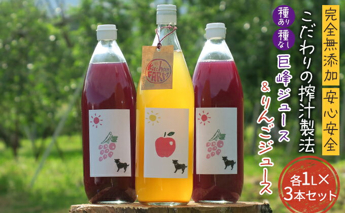 【ふるさと納税】【完全無添加】【安心安全】【こだわりの搾汁製法】種あり巨峰/種なし巨峰/りんごのジュース 3本セット【栽培期間中 除草剤・ネオニコチノイド系農薬・化学肥料不使用】 果実飲料 フルーツジュース 飲み物 飲み比べ お届け:寄附入金確認後、随時発送