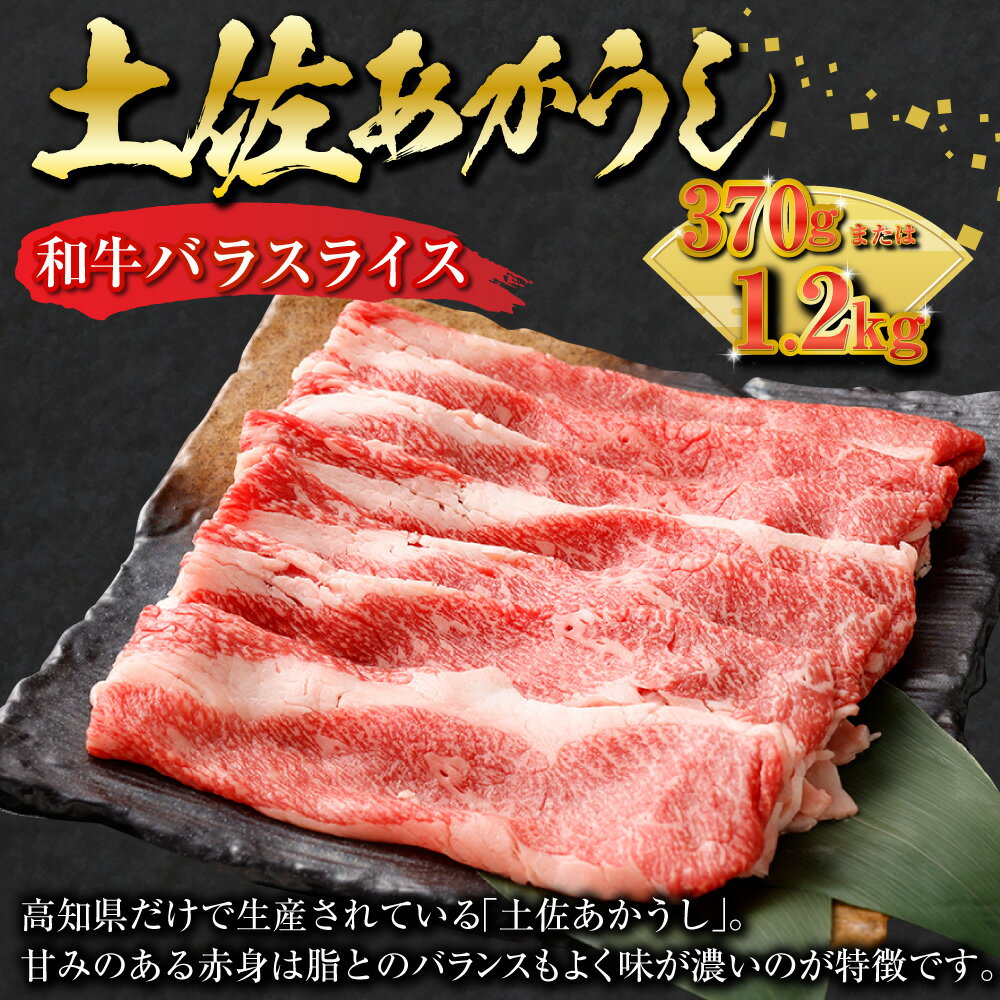 【ふるさと納税】<選べる内容量>”出荷頭数0.02%の奇跡” 土佐あかうし 和牛 バラスライス 約370g / 計約1.2kg(約400g×3パック) あか牛 赤牛 牛肉 お肉 和牛 ビーフ 赤身 冷凍 高知県産 国産 高知県 香美市 送料無料