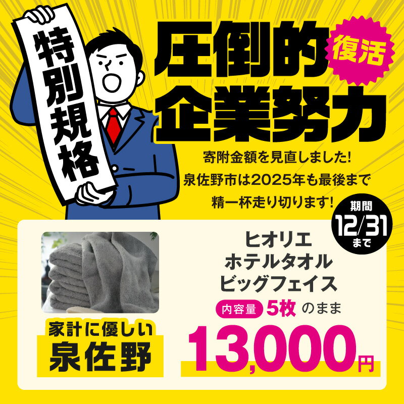 \レビューキャンペーン実施中/ \選べる6色/ ヒオリエ ホテルタオル ビッグフェイス5枚 ふかふか ヒオリエ ネットランキングNo1 厚手 パイル 無地 吸水力 ボリューム 柔らかい ホテル仕様 単色 ビッグ 泉州タオル