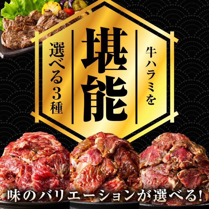 【ふるさと納税】<選べる3種の漬けダレ>ハラミ 各1.2kg (400g×3pc) 塩/味噌/醤油 | 小分け 味付け肉 焼肉 BBQ 冷凍 味噌 醤油 塩 焼くだけ 簡単調理 牛肉 肉 お肉 北海道 岩見沢市