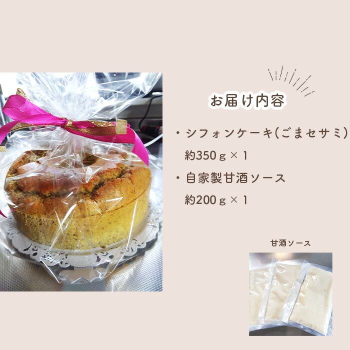 - 【ふるさと納税】特別自然栽培無農薬米粉のホールシフォンケーキ「ごまセサミ」 / スイーツ デザート おやつ 焼菓子 お菓子 洋菓子 こめこ ホールケーキ 独自ブレンド 低糖質 低カロリー 低GI 甘酒トッピングソース 愛知県 No.240