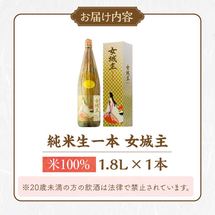 【ふるさと納税】女城主 純米生一本 米100% 1.8L/ 日本酒 女城主 純米生一本 地酒 清酒 純米酒 米百パーセント 生一本 枡酒 晩酌 食中酒 一升瓶 和酒 地酒 辛口 やや辛口 冷酒 燗 熱燗 ぬる燗 お酒 お取り寄せ 贈答 ギフト 人気 おすすめ 岐阜県 /恵那市/岩村醸造 [AUAK031]