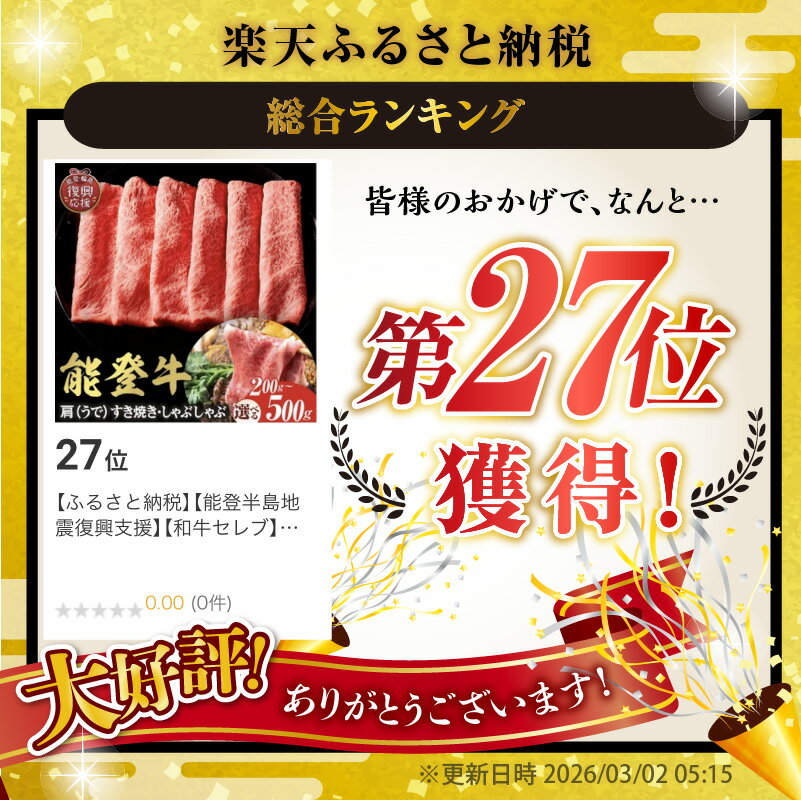 【ふるさと納税】【能登半島地震復興支援】【和牛セレブ】能登牛 牛肩 ( うで ) ( 選べる内容量 : 200g 300g 400g 500g )| 牛肉 肉 国産牛 和牛 能登牛 ブランド牛 冷凍 すき焼き しゃぶしゃぶ 送料無料 国産 能登 石川県 輪島市