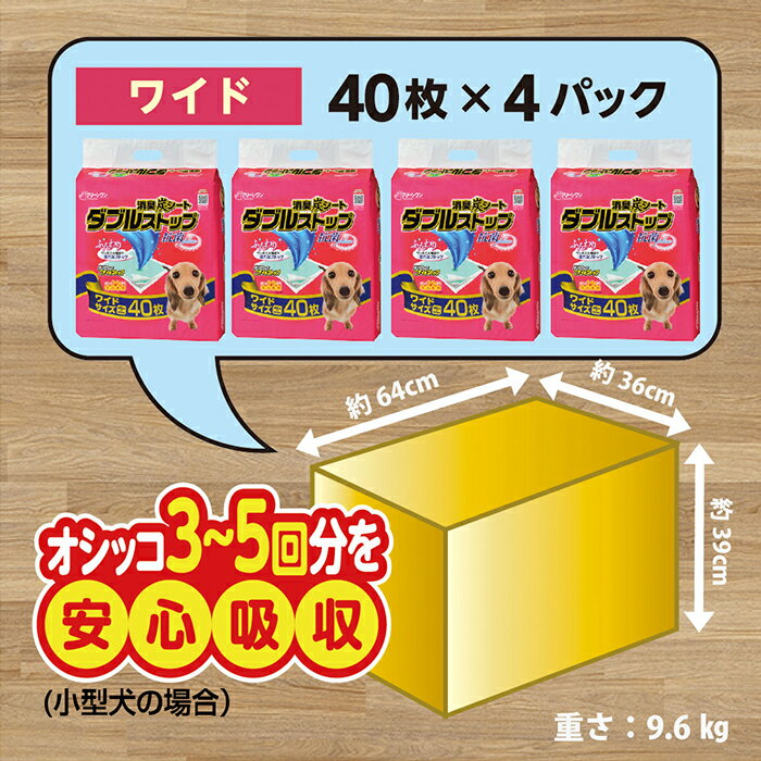 - 消臭シート ダブルストップ ワイド 40枚×4袋 クリーンワン ペットシーツ 犬用 消臭 抗菌 炭シート ペットシート