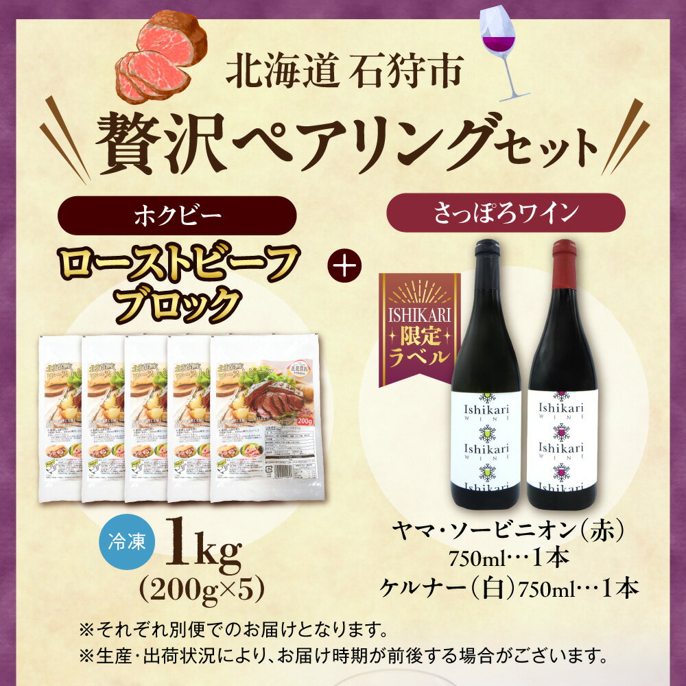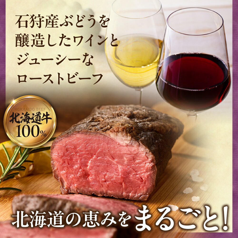 【ふるさと納税】《レビューキャンペーン》ローストビーフ ワイン ペアリング セット 北海道産牛肉 牛もも肉 赤身肉 栄養豊富 冷凍 サラダ ローストビーフ丼 和食 洋食 赤ワイン 白ワイン ケルナー ヤマソービニオン 限定ラベル 石狩市産ぶどう 贅沢 ギフト 北海道 石狩市