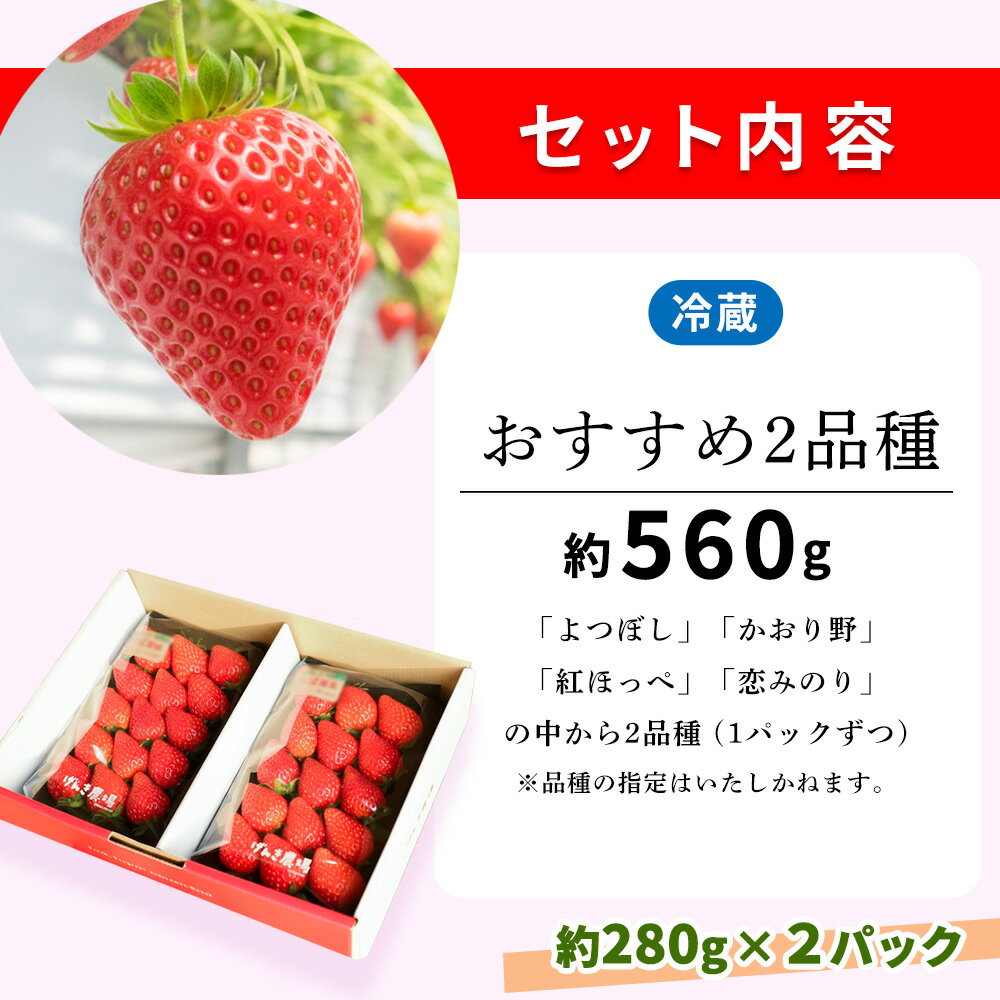 - 【ふるさと納税】【先行受付 2026年1月より発送】【農場直送!】いちご2品種食べ比べ(約280g×2P)【ふるさと納税 基山町産 いちご イチゴ 朝採れ 完熟果】K100009