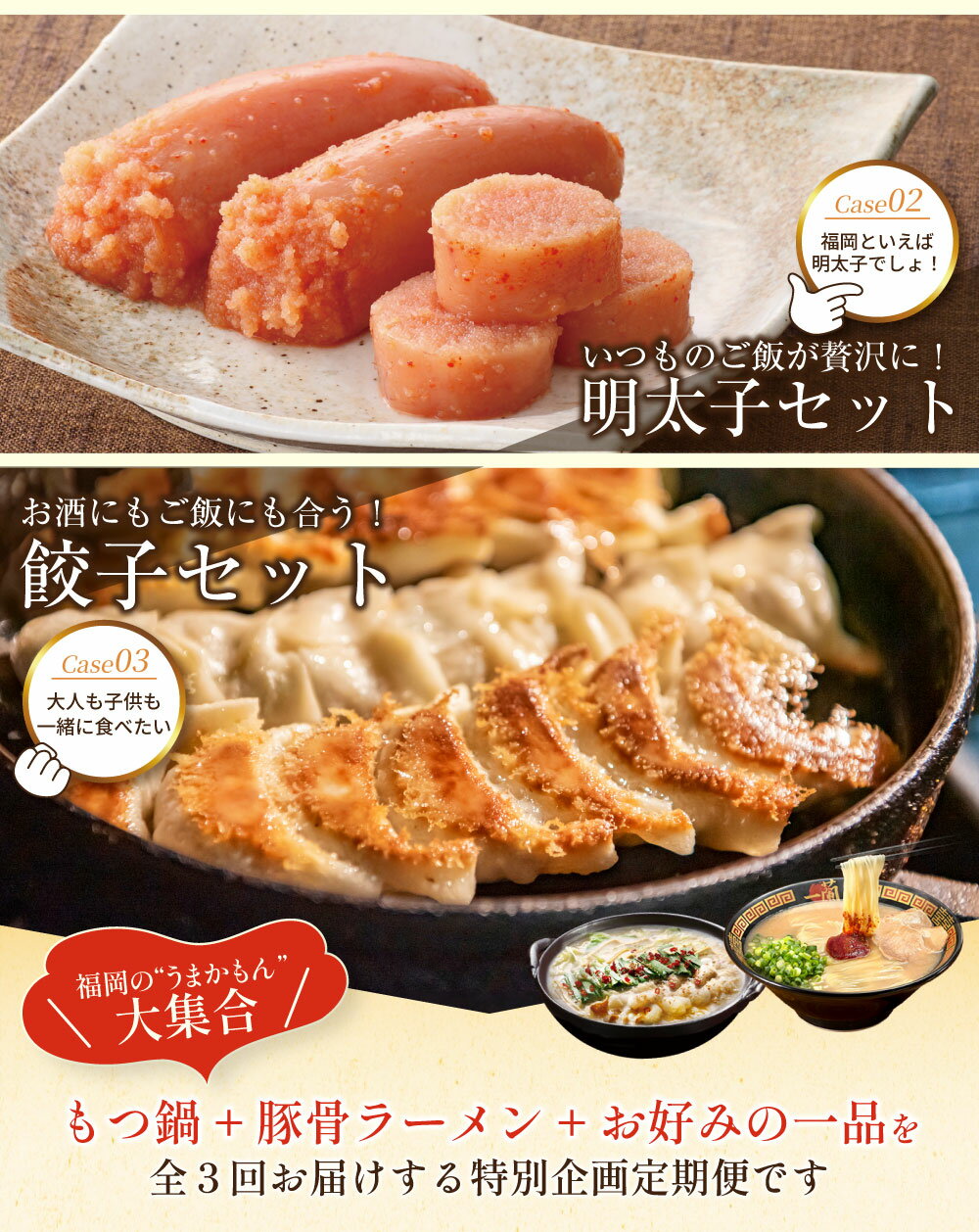 - 【ふるさと納税】自分で選ぶ!福岡グルメ定期便 (毎月・全3回) もつ鍋 水炊き 明太子 豚骨ラーメン 一蘭 地鶏 やまや 餃子 鉄鍋餃子 惣菜 ぐるめ ご当地 名物 福岡 博多 バラエティ 定期便 定期便 福岡県 福智町 送料無料 ★レビューキャンペーン開催中★