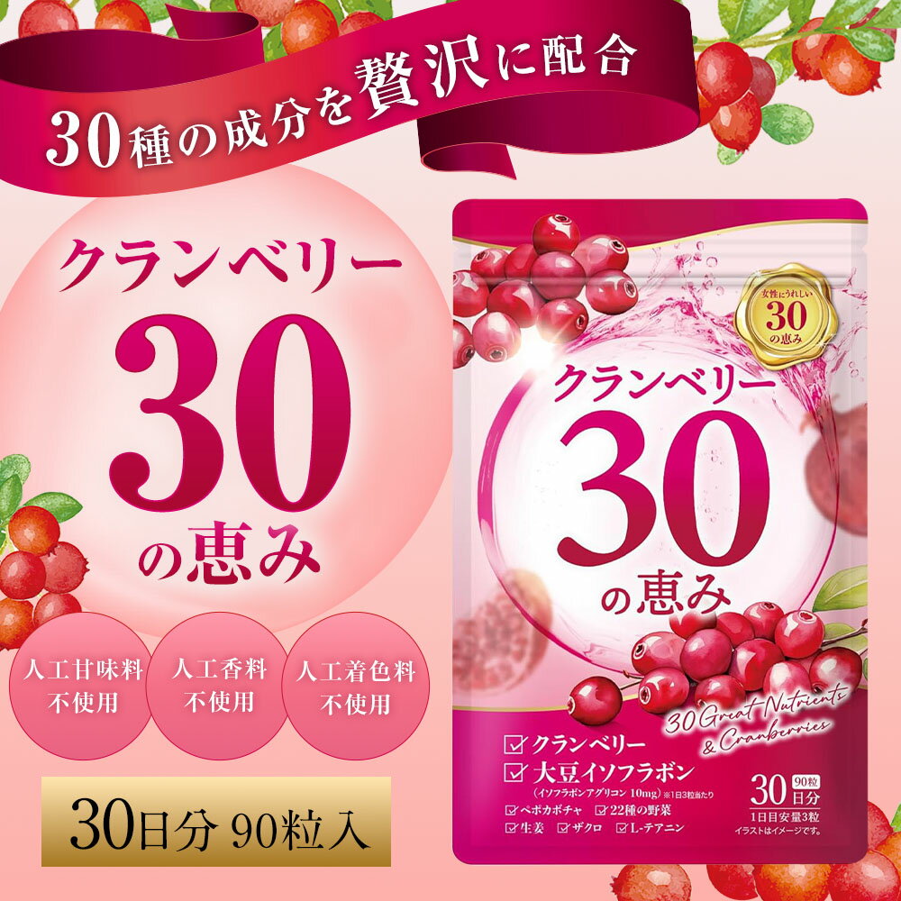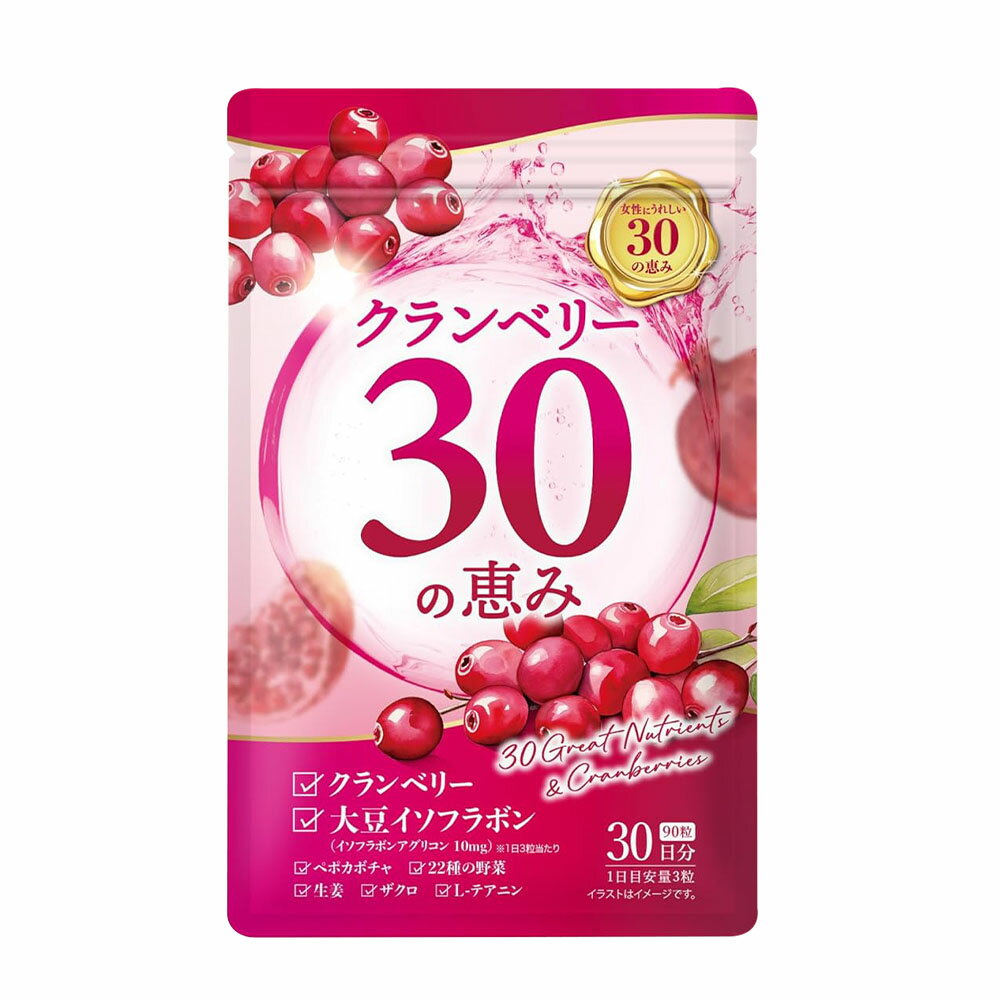 【ふるさと納税】クランベリー30の恵み 1袋 1ヶ月分 計22.5g(250mg×90粒) ポリフェノール 大豆イソフラボン ザクロ ペポカボチャ テアニン 生姜 人工甘味料・人工香料・人工着色料不使用 トイレ 女性 サプリメント 健康 健康食品 福岡県 直方市 送料無料