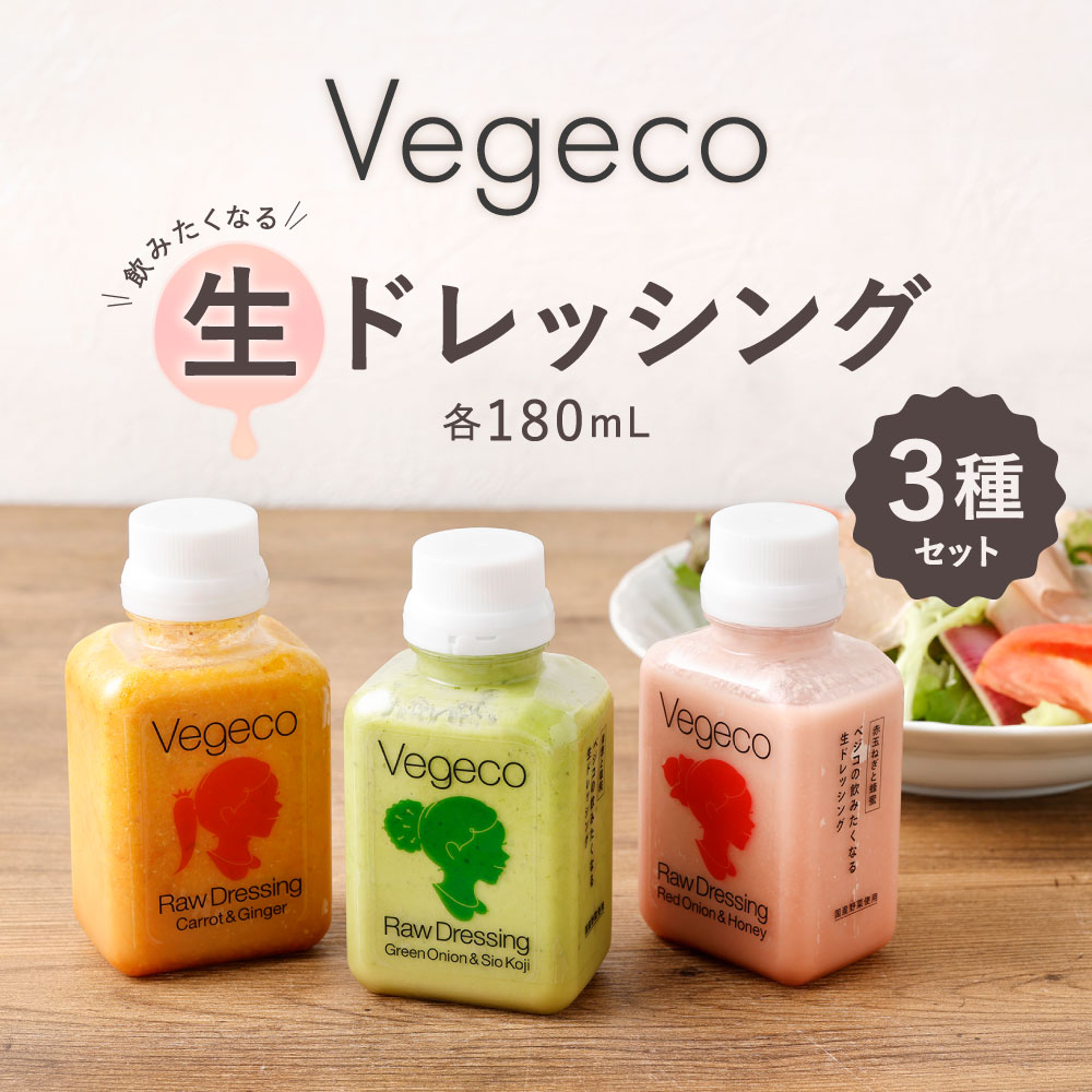 【ふるさと納税】Vegecoの飲みたくなる生ドレッシング 3種類セット(各180mL) 選べる 3種×各1本セット / 3種×各2本セット 食べ比べ サラダドレッシング 人参と生姜 赤玉ねぎとはちみつ 青葱と塩麹 無添加 手作り ドレッシング 国産野菜 厳選 こだわり 冷蔵 福岡県北九州市