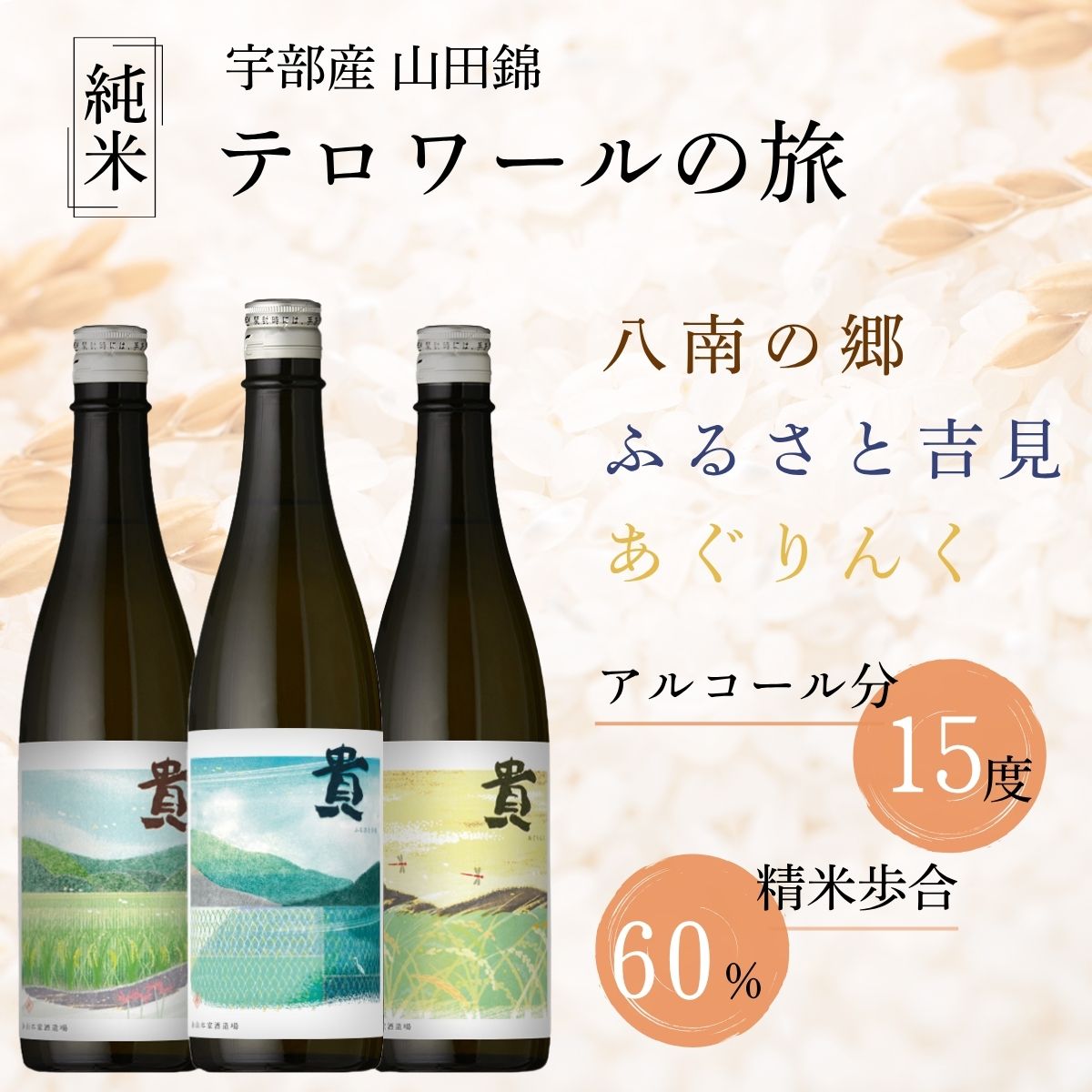【ふるさと納税】貴「テロワールの旅」純米酒 3本 飲み比べセット | 貴 純米酒 日本酒 酒 お酒 アルコール テロワールの旅 飲み比べ 3本セット 山田錦 あぐりんく ふるさと吉見 八南の郷 贈り物 贈呈品 ご褒美 おつまみ つまみ お酒のお供 山口県 宇部市