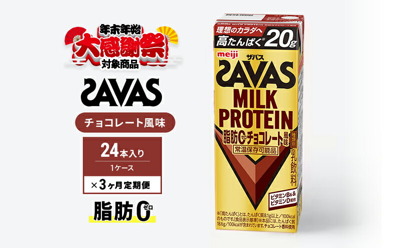 【ふるさと納税】【年末年始大感謝キャンペーン】SAVAS ザバス 定期便 3ヶ月 MILK PROTEIN 脂肪0 チョコレート風味 24本 プロテイン ザバスプロテイン ミルクプロテイン ドリンク 運動後の水分補給 プロテインドリンク 飲みやすい 運動 スポーツ 京都府 京田辺市
