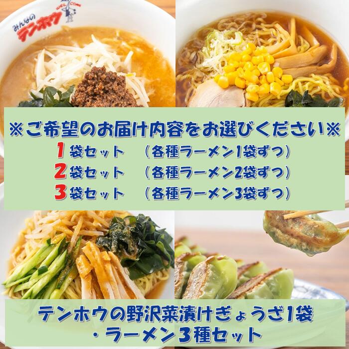 【ふるさと納税】[テンホウぎょうざラーメンセット]野沢菜漬けぎょうざ1袋・ラーメン3種セット【タンタンメン・しょうゆラーメン・バンバンチーメン】 全3種[1袋セット・2袋セット・3袋セット]/ テンホウ 餃子 冷凍餃子 ラーメン 信州 長野県 諏訪市 諏訪 【21-414243】