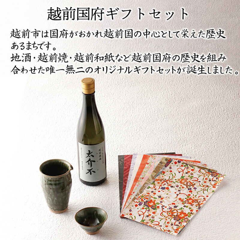 【ふるさと納税】<数量限定>「越前国府ギフトセット」~地酒・越前焼・越前和紙~ / 送料無料 大吟醸 太介不 縁釉 陶器 祝い 贈答 福井 越前 日本酒 プレゼント お土産 (18209)
