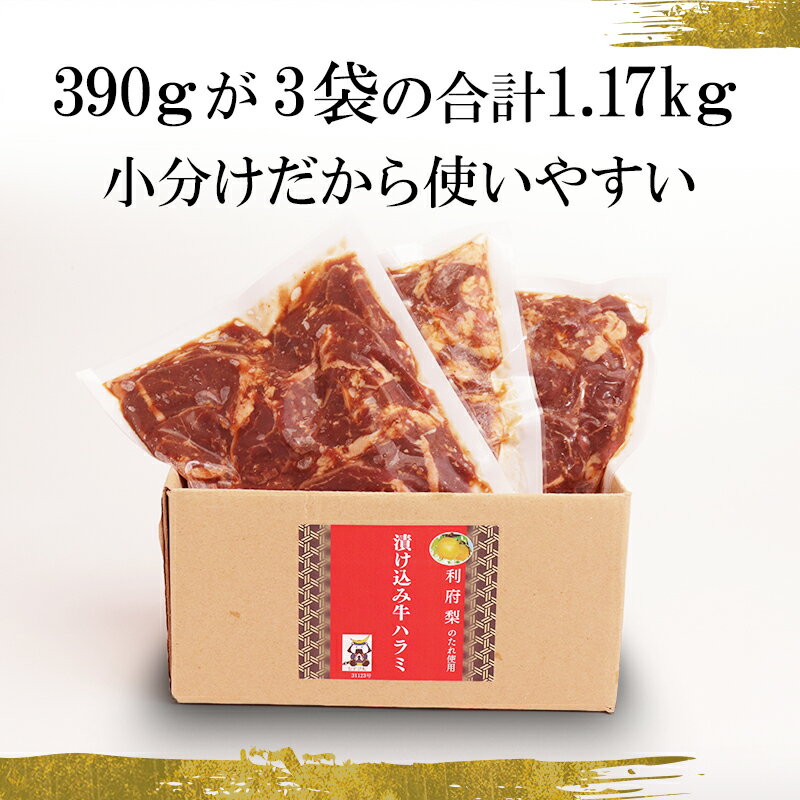 【ふるさと納税】漬け込み牛ハラミ(利府梨のたれ使用)計1.17kg 390g ×3パック