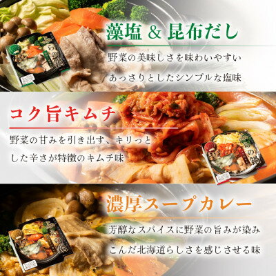 - 【ふるさと納税】【富良野・北海道野菜の甘み際立つ】ふらの鍋 満喫3種類セット 2人前×3種類【配送不可地域:離島】【1692330】