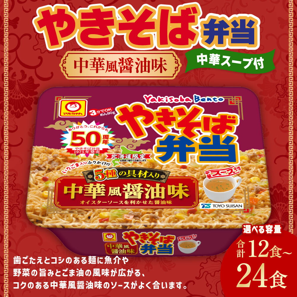 - 【ふるさと納税】<選べる内容量>マルちゃん「やきそば弁当 5種の具材入り中華風醤油味」 12食入り×1ケース / 計24食(12食入り×2ケース) 1食117g 計1.404kg / 計2.808kg カップ焼そば 焼きそば 魚介類 野菜 キャベツ 調製大豆ミート 麺類 惣菜 北海道 小樽市 送料無料