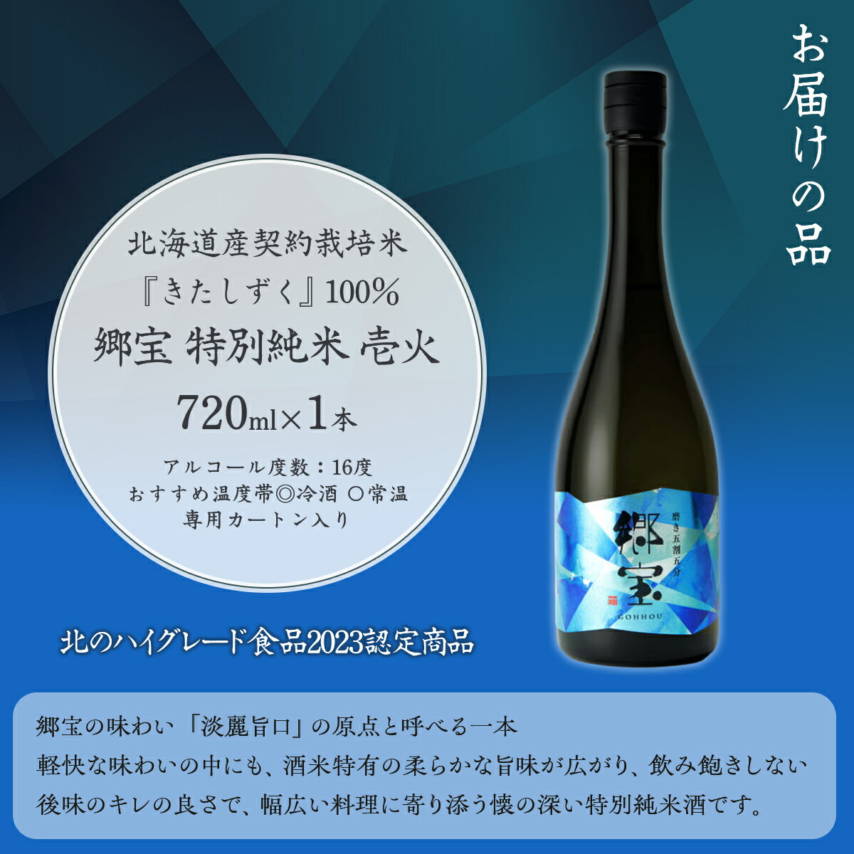 - 【ふるさと納税】郷宝 特別純米 壱火720ml(磨き五割五分) 【ふるさと納税 人気 おすすめ ランキング 郷宝 ごっほう 日本酒 お酒酒 おさけ アルコール ギフト 贈答品 プレゼント 北海道 七飯町 送料無料】 NAAK005