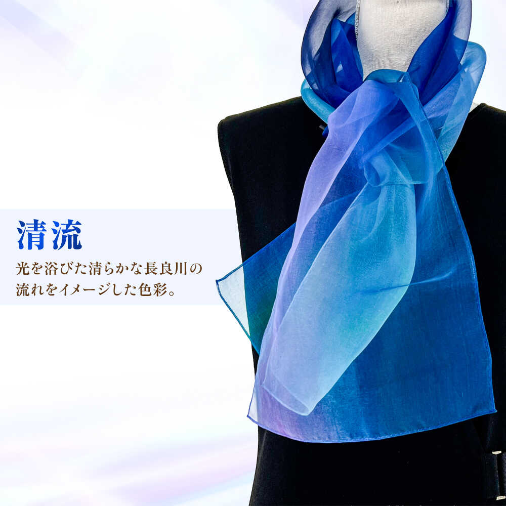 - 【ふるさと納税】スカーフ 美濃友禅 【シルクスカーフ】 NAOE KAWAMURA ー清流ー ストール ショール 雑貨 小物 人気 染色 グラデーション 上品 高級感 エレガント フォーマル カジュアル サステナブル ハンドメイド ギフト 岐阜市 / 河村尚江デザイン事務所[ANDE004]