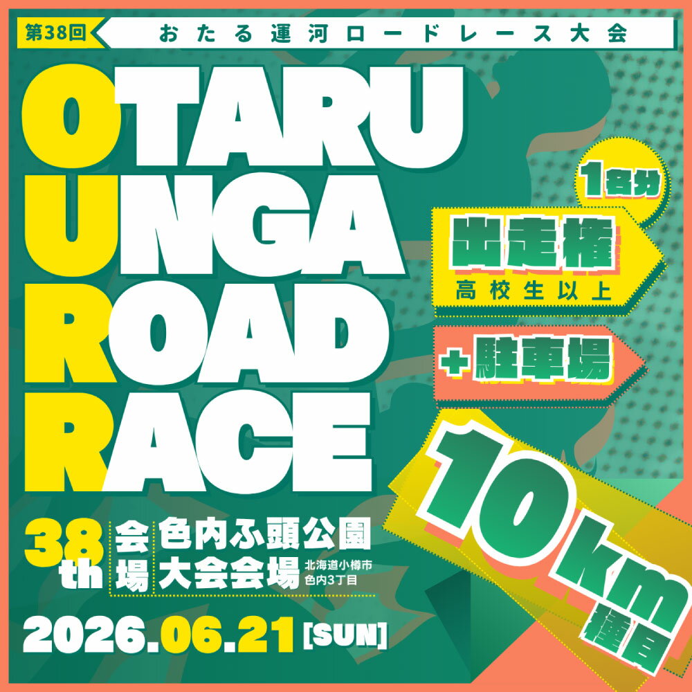 - 【ふるさと納税】【限定50名_駐車場付き】 2026年6月21日(日) 第38回おたる運河ロードレース大会 【10km種目】 出走権 (高校生以上) & 駐車場確約 / ロードレース マラソン ランニング 大会 駐車場 出場権 10km スポーツ 運動 競技 ランナー 大会出場 観光地 北海道 小樽市