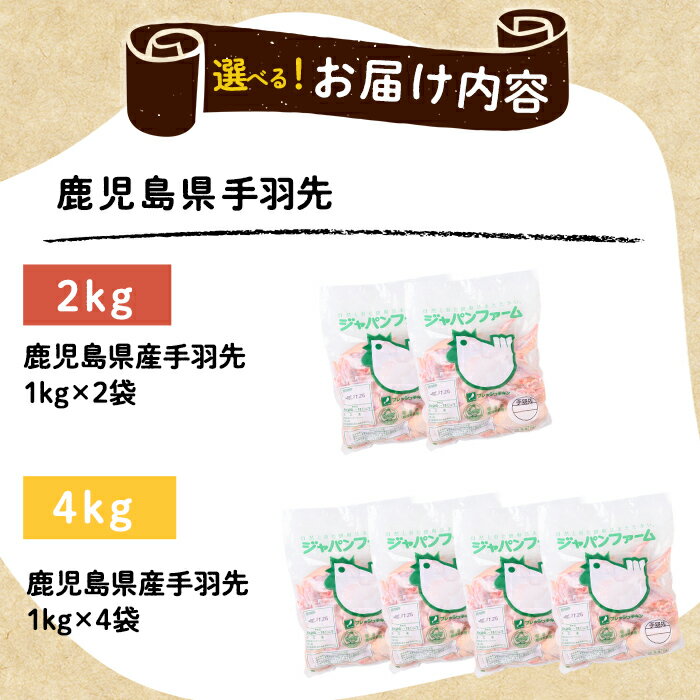 - 【ふるさと納税】<すぐ届く!>【容量が選べる!】鹿児島県産手羽先(計2kg or 計4kg)肉 鶏肉 焼鳥 から揚げ 煮物 焼肉 バーベキュー BBQ つまみ 国産 九州産 冷凍 小分け【宮下商店】