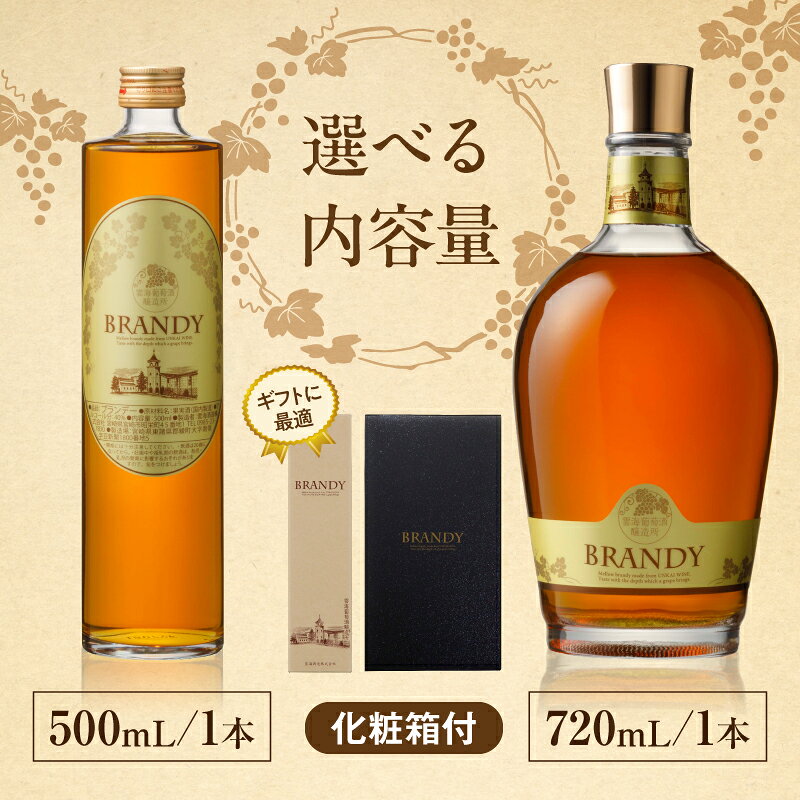 - 【ふるさと納税】【熨斗対応・ギフト包装】《1週間以内発送》【選べる内容量】雲海葡萄酒醸造所 ブランデー 40度 国産 国産ブランデー 酒 洋酒 お酒 アルコール 果実酒 蒸留酒 瓶 贈答用 贈り物 ギフト プレゼント 化粧箱 化粧箱入り お祝い おすすめ 人気 雲海酒造 宮崎市