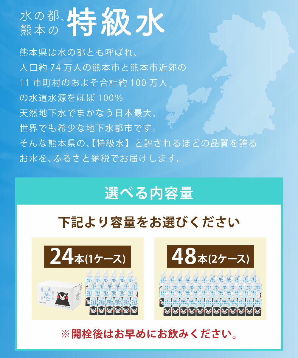 【ふるさと納税】〈選べる容量〉熊本のおいしいお水 阿蘇山天然水 330ml×24本(1ケース)、330ml×48本(2ケース) 阿蘇 阿蘇山 カルデラ 天然水 天然 お水 水 地下水 ミネラル ミネラルウォーター 飲料 飲料水 ペットボトル HACCP 九州 熊本県 送料無料