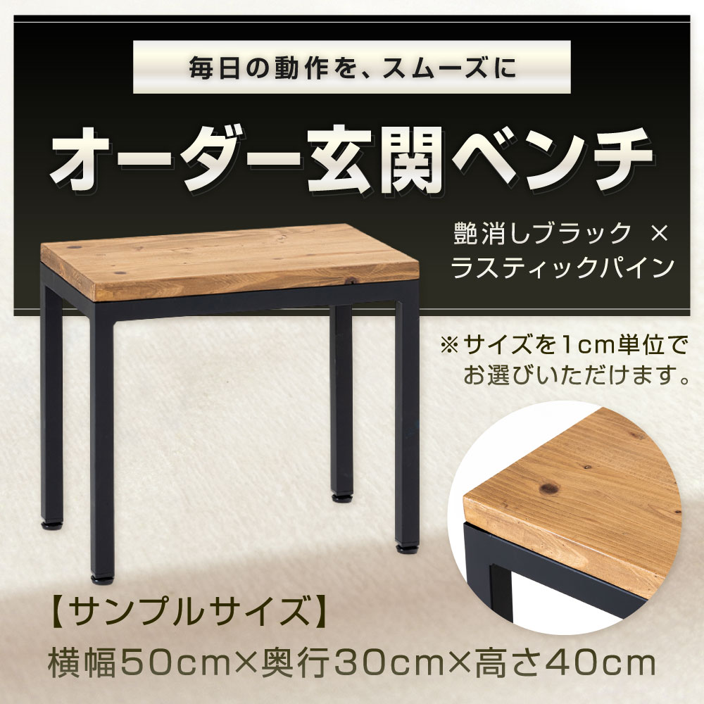 【ふるさと納税】オーダー玄関ベンチ 艶消しブラック×ラスティックパイン 鉄 アイアン ウッド 杉 無垢材 スツール 椅子 腰掛け おしゃれ 木 ベンチ カスタム可能 インテリア 家具 福岡県北九州市