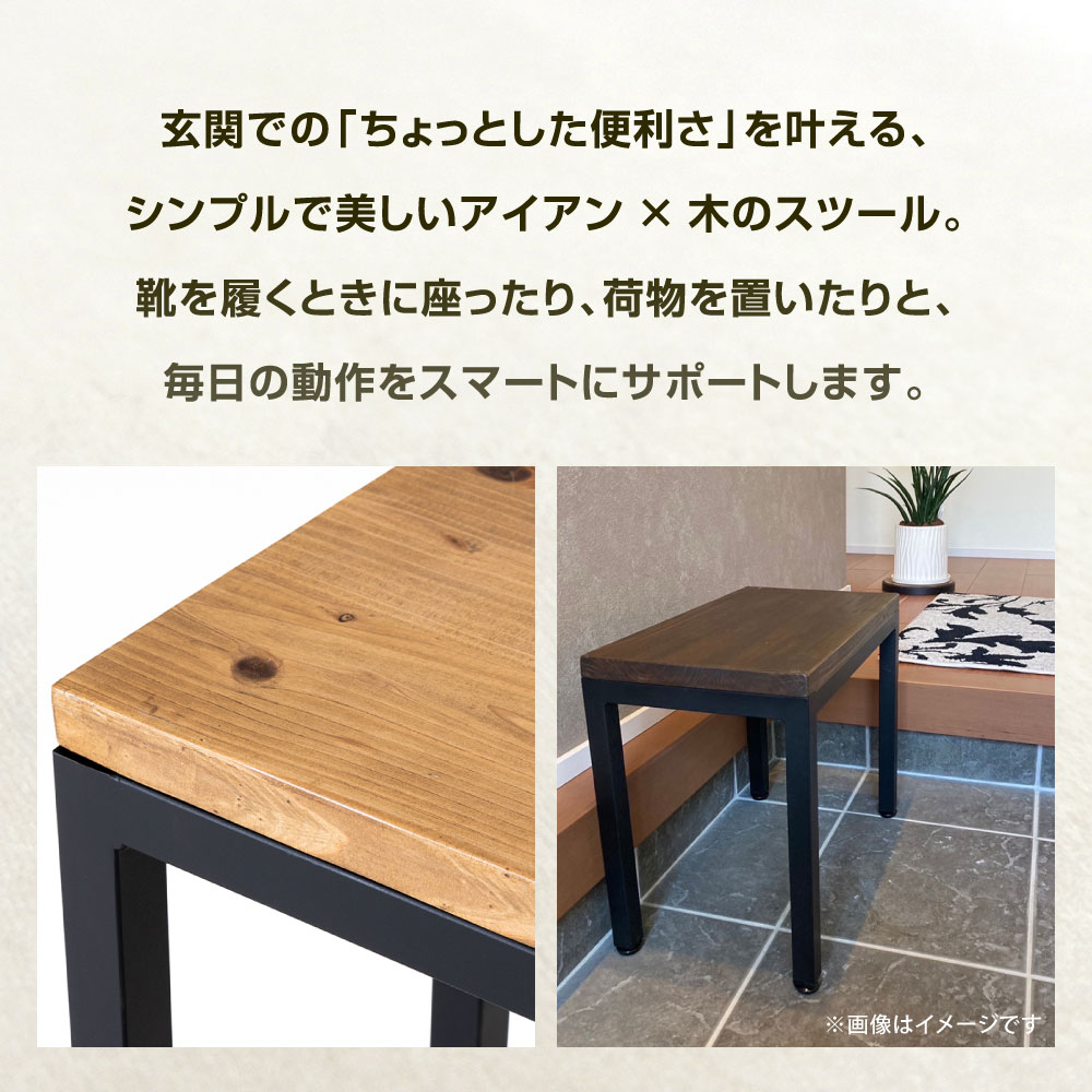 - 【ふるさと納税】オーダー玄関ベンチ 艶消しブラック×ラスティックパイン 鉄 アイアン ウッド 杉 無垢材 スツール 椅子 腰掛け おしゃれ 木 ベンチ カスタム可能 インテリア 家具 福岡県北九州市