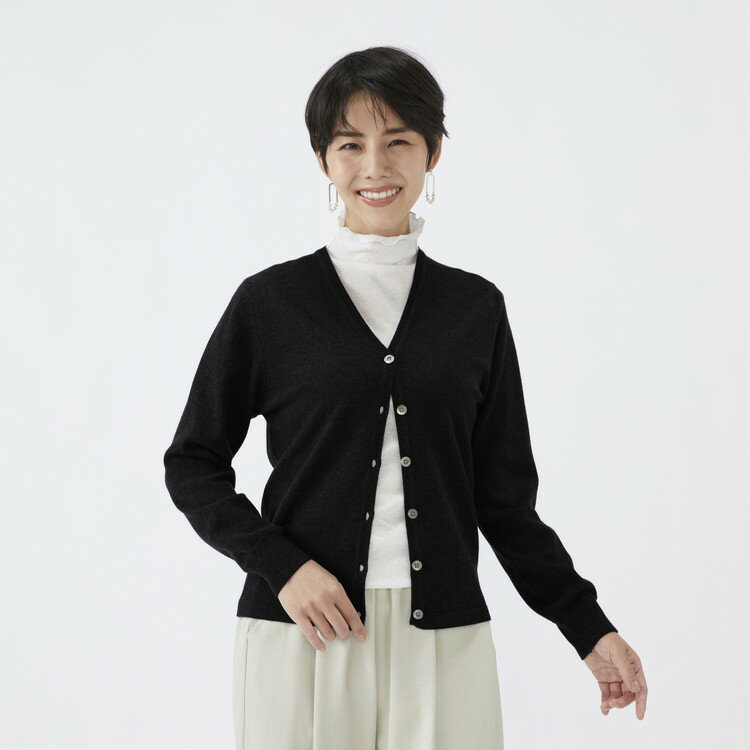 - 【ふるさと納税】【選べるサイズ】日本製 カシミヤ100% レディース Vカーディガン ブラック 90805