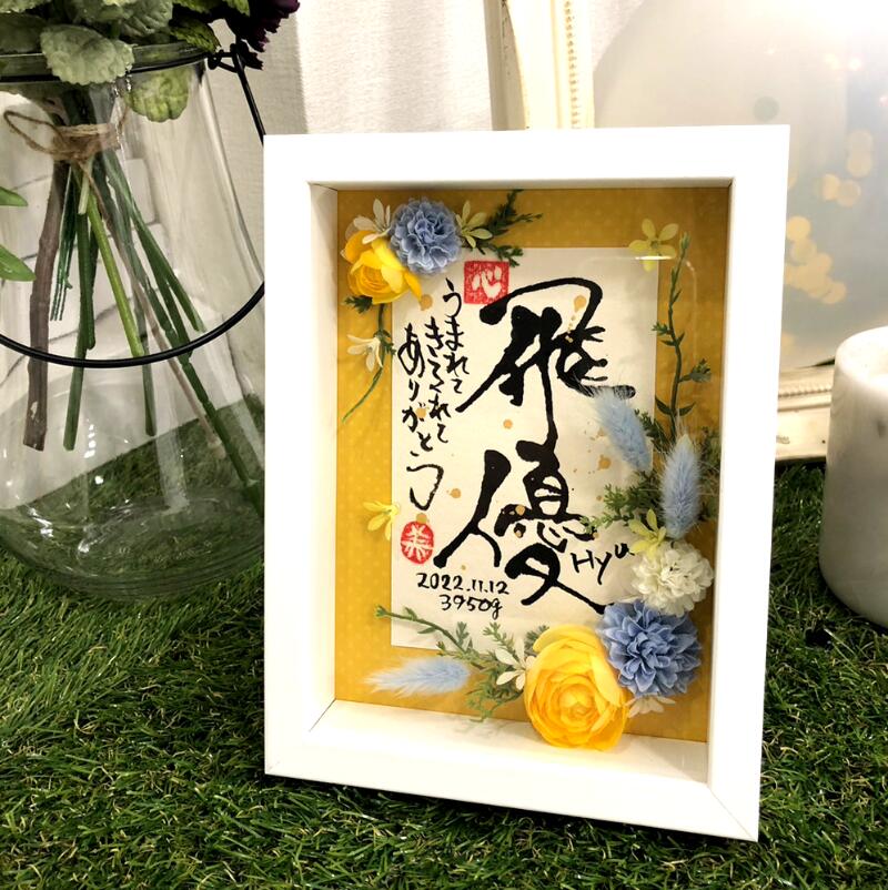 【ふるさと納税】遠藤美和 オーダーメイド 命名祝いに 指文字アート×フラワー【2Lサイズ 額入り 伊勢和紙使用】