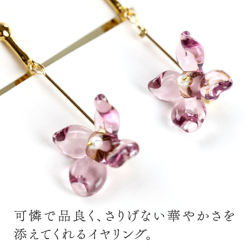 【ふるさと納税】flowerイヤリング ロングタイプ 《選べるカラー:4色》ガラスジュエリー Glass Jewelry grain アクセサリー 秋田
