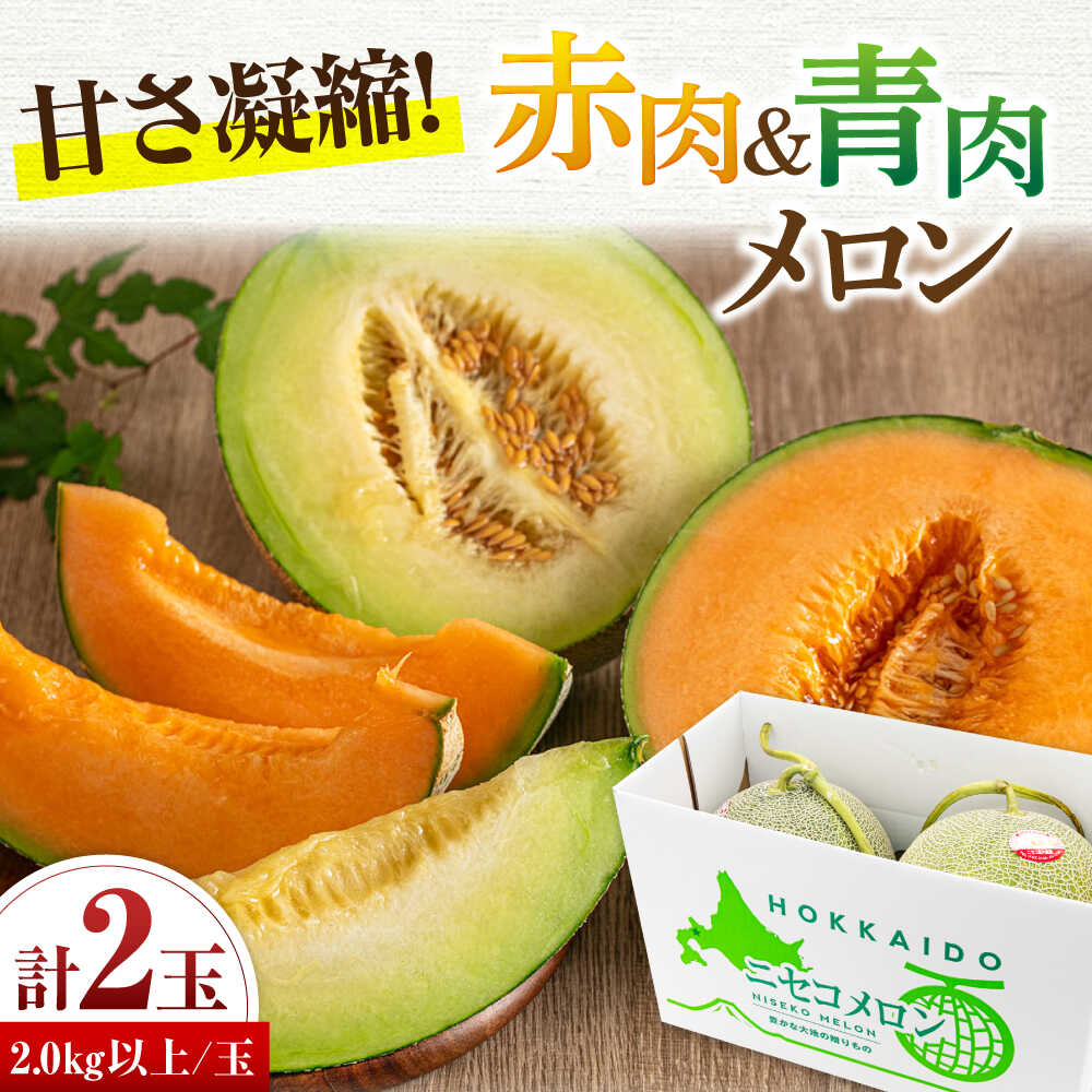 - 【ふるさと納税】【2026年7月下旬以降順次発送】【ニセコ町産】 赤肉&青肉メロンセット 大玉2玉 《喜茂別町》【ニセコビュープラザ直売会協同組合】 メロン 化粧箱入り フルーツ 果物 赤肉 先行予約 常温 常温配送 北海道[AJAH027]