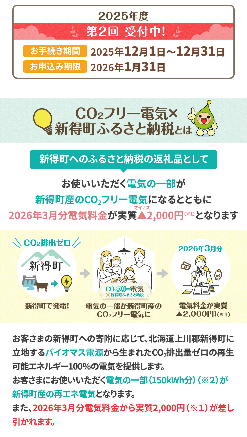 - 【ふるさと納税】新得町産CO2フリーの電気 10,000円コース ※お申込前に申込条件を必ずご確認ください【AJ-1001】