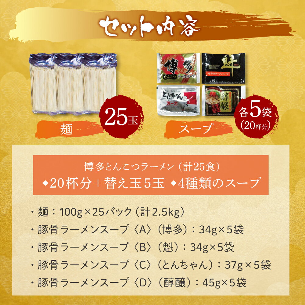 - 【ふるさと納税】 レビューキャンペーン 博多とんこつラーメン 計25食 20杯分と替え玉5玉 4種類の博多の福岡産スープ 豚骨 ラーメン 博多 福岡 簡単 本格 替え玉
