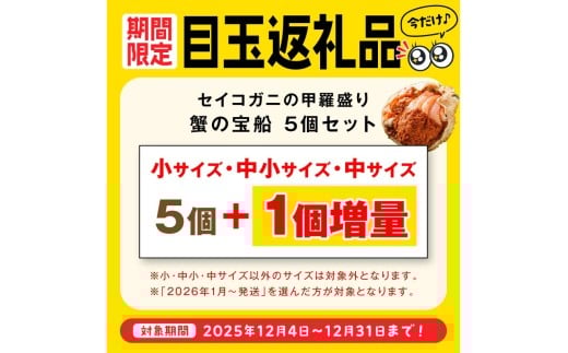 - 【蟹の匠 魚政】セイコガニの甲羅盛り 蟹の宝船(たからぶね)小サイズ5個セット 濃縮ダシ付(2026年1月~発送)1個増量 せいこがに 香箱ガニ 香箱蟹 甲羅もり UO01250S