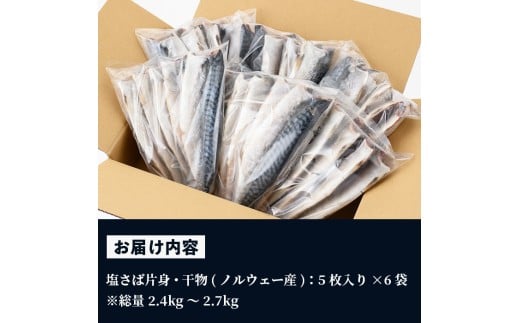 ノルウェー産塩さば片身・干物(30枚・総量2.4kg~2.7kg) サバ 片身 詰め合わせ 冷凍 セット ギフトにも!【A-2044H】