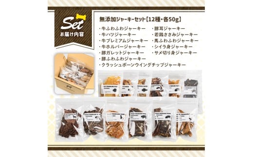 a883 <保存料・着色料 不使用>愛犬用無添加ジャーキー12種セット(各50g・合計600g)牛肉、豚肉、鶏肉、馬肉、魚肉のジャーキー! 【Nフードサービス】姶良市 牛 豚 鶏 馬 魚 ジャーキー 犬 ドッグ ペット フード エサ おやつ ごはん 間食 ご褒美 ペット関係