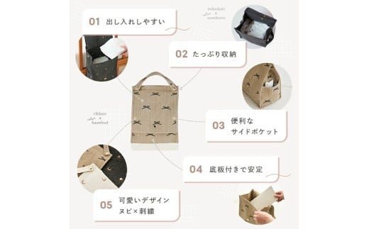 おむつストッカー 【ヘーゼルナッツ×リボン】〈 アットライズ 〉 おしゃれ 取り外し可能 2WAY 仕切り 蓋付き 板付き おむつ入れ おむつケース おむつ収納 おむつ整理 大容量 おむつ バッグ 収納 整理ケース ベビー用品 赤ちゃん 出産祝い ギフト 奈良県 奈良市