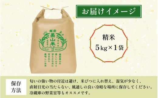 越前美山米 令和7年福井市産コシヒカリ 精米5kg [B-204001] / 新米 精米 米 お米 コメ 送料無料 コシヒカリ こしひかり 令和七年産 七年 7年 令和7年 福井県 福井市