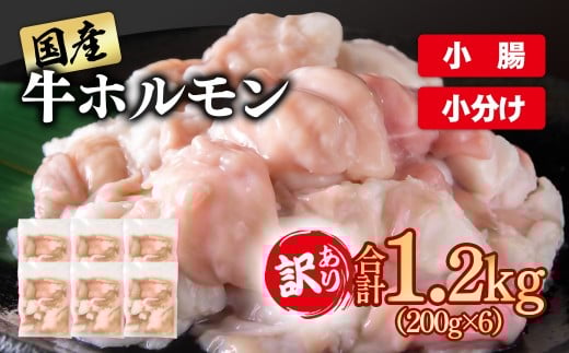 訳あり牛ホルモン 小腸 1.2㎏ 小分け200g×6 国産 ホルモン もつ鍋 焼肉用 国産牛 牛モツ コラーゲン<1-300>
