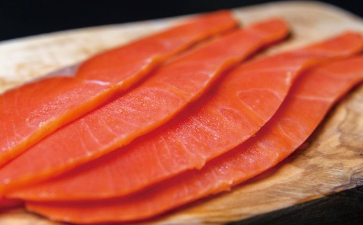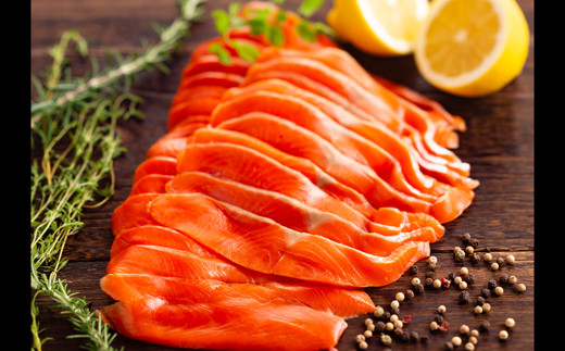 - 26-51 天然紅鮭無添加スモークサーモン半身(スライス4分割)【2026年4月以降発送】