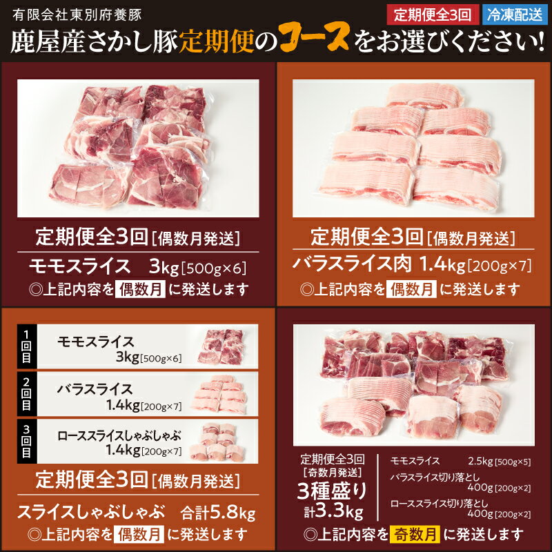 - 【ふるさと納税】<全3回 定期便>鹿屋産 さかし豚 選べる 肉 豚肉 モモ バラ ロース スライス 切り落とし しゃぶしゃぶ 豚しゃぶ 小分け 真空パック 国産 鹿児島県産 冷凍 東別府養豚 鹿児島 鹿屋市 おすすめ ランキング プレゼント ギフト