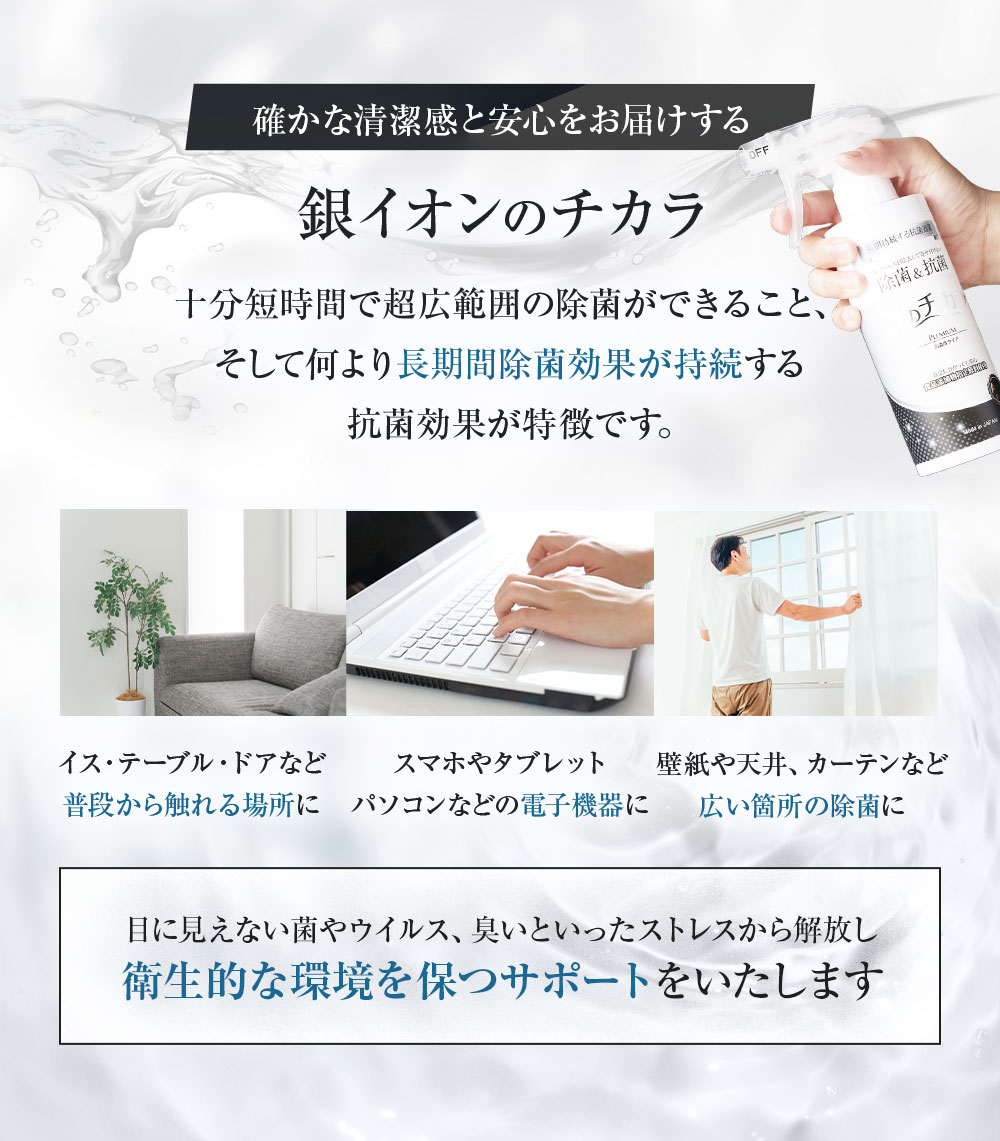 - 【ふるさと納税】銀のチカラ 濃度10ppmスプレー 300ml 高濃度銀イオン配合スプレー 消臭スプレー Ag 除菌 消臭 抗菌 インフルエンザ ノロウィルス 体臭 臭わない 安心 安全 赤ちゃん お子様 ペット 衛生管理 日用品 山梨県 中央市 送料無料