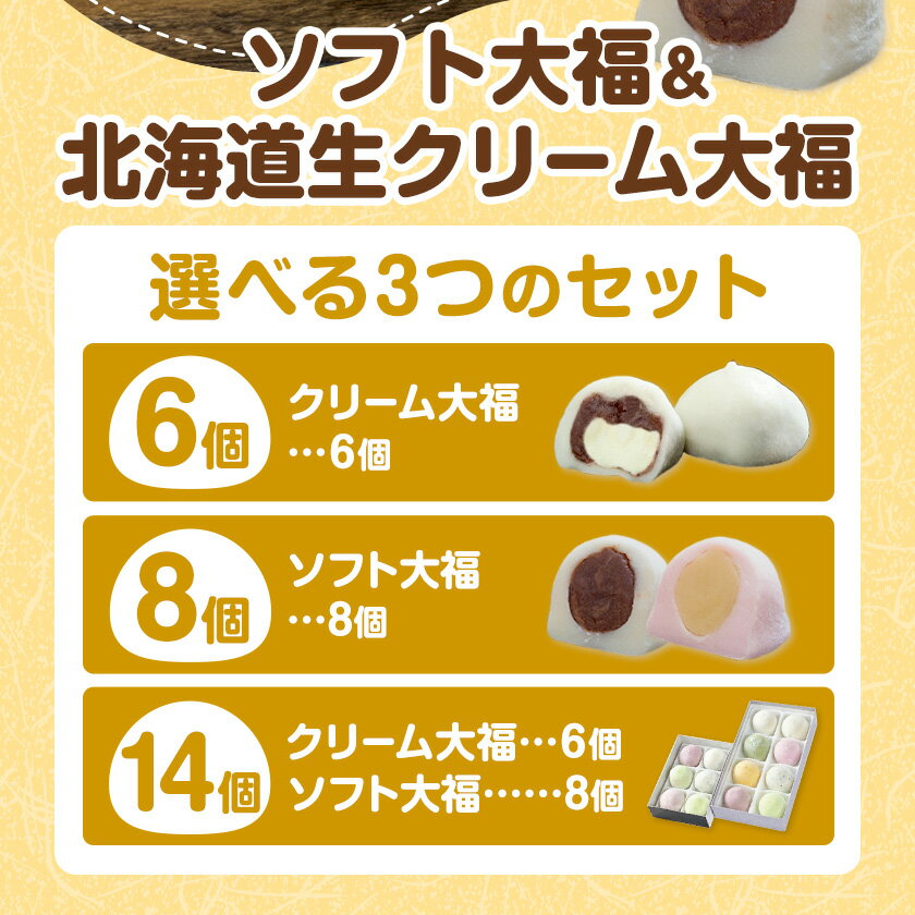 - 【ふるさと納税】ソフト大福 北海道生クリーム大福 選べる セット内容 6個 8個 14個入り もち米の里ふうれん特産館《30日以内に出荷予定(土日祝除く)》北海道 名寄市 和菓子 大福 お茶菓子 あんこ もち もち米 食べ比べ 贈り物 プレゼント 送料無料