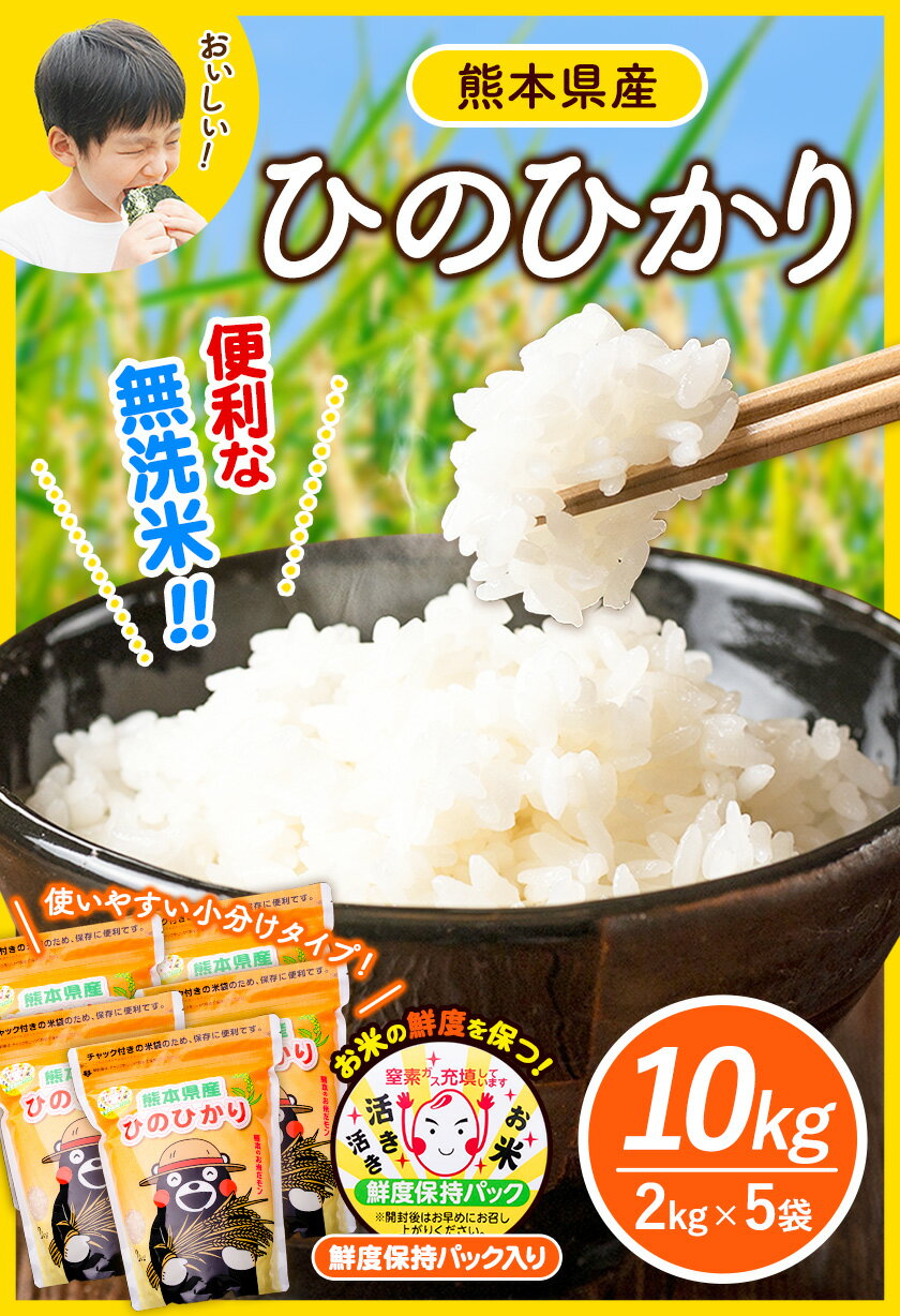 【ふるさと納税】【令和7年産】米 ひのひかり 無洗米 10kg 2kg×5袋 くまモン袋入り 株式会社 九州食糧《30日以内に発送予定(土日祝除く)》熊本県 御船町 精米 こめ コメ 小分け 便利 くまモン 熊本県産