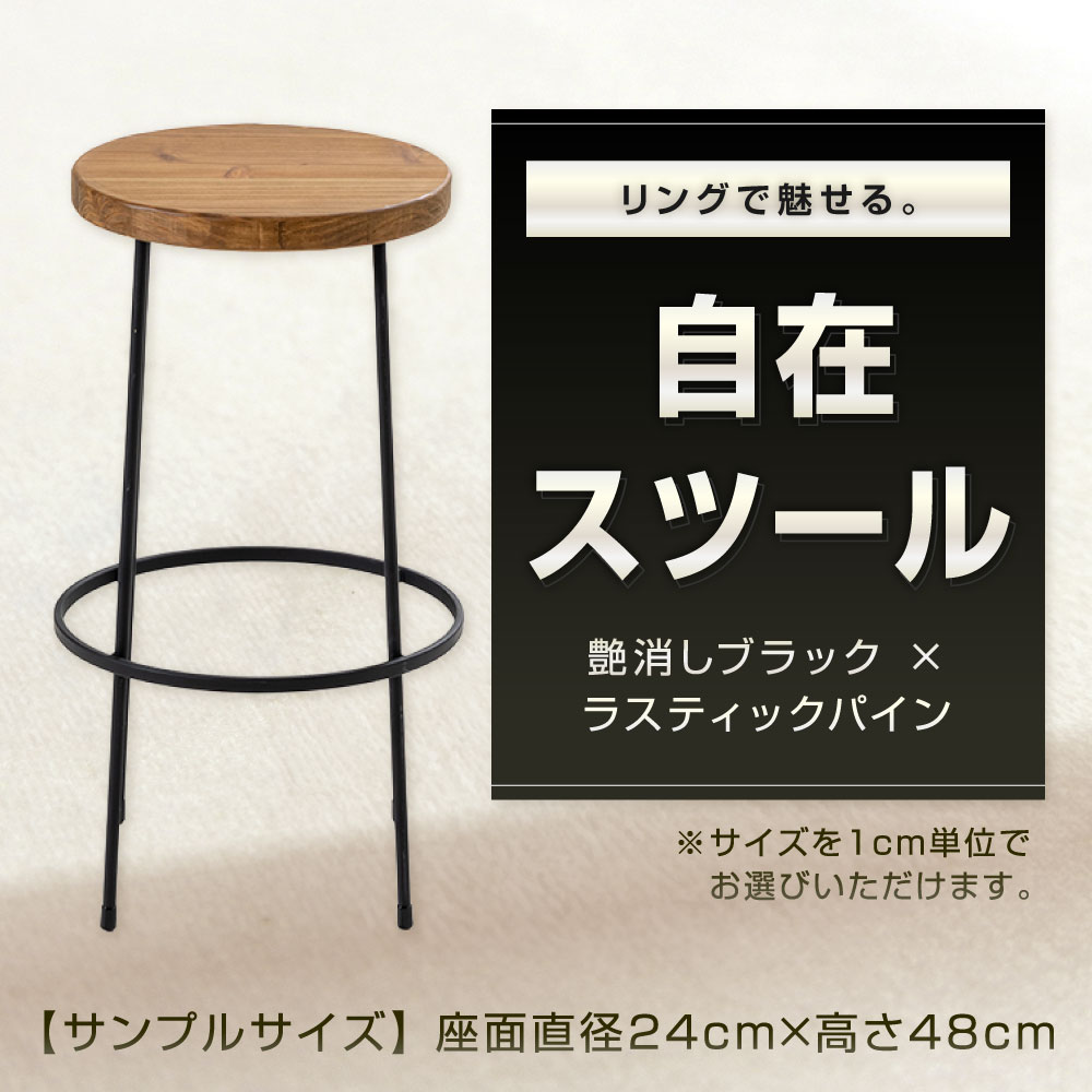 - 【ふるさと納税】自在スツール 艶消しブラック×ラスティックパイン 座面直径24cm 鉄 アイアン ウッド 杉 無垢材 シンプル おしゃれ スツール 椅子 チェア カウンターチェア 腰掛け ブラック 金 インテリア 福岡県北九州市