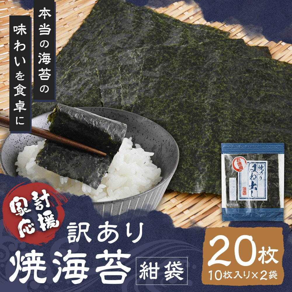 - 【ふるさと納税】【家計応援】【ワケアリ】焼海苔 紺袋 計20枚(10枚入り×2袋)訳あり 有明海苔 焼き海苔 やき海苔 板海苔 乾きのり 乾海苔 海苔 のり おにぎり 手巻き チャック付き 有明海産 国産 福岡県 柳川市 送料無料