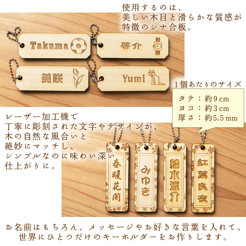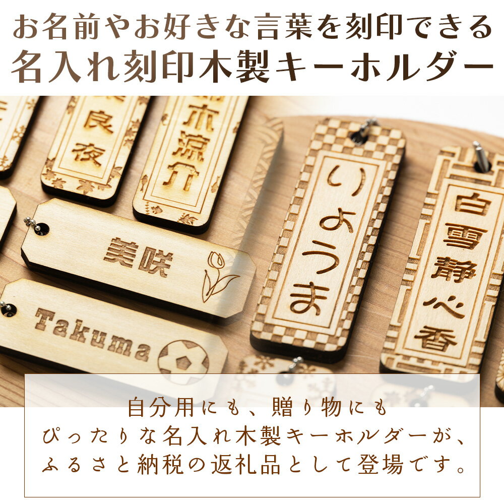 - 【ふるさと納税】木製名入れキーホルダー2個セット - 木製 キーホルダー 名入れ 刻印 シナ合板 千社札タイプ ネームプレートタイプ プレゼント 記念品 贈り物 ギフト アクトランド 高知県 香南市 ak-0010