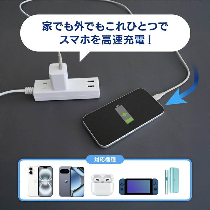【ふるさと納税】急速充電器 PD 65W USB Type-C スマートフォン対応 超薄型 GaN タイプC ホワイト 充電器 スマホ タブレット ゲーム機 ノートパソコン 高速充電 収納 持ち運び 便利 折りたたみ式プラグ 日用品 家電 雑貨 大阪府 泉佐野市 送料無料